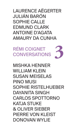 Conversations is a book of interviews with contemporary photographers, conducted by Rémi Coignet, photo book critic. Since 2014, when the first volume was published, the aim is to give a prominent place to photographers, so that they can make their voices heard in the field of publishing, often forgotten in favour of those of critics, journalists and curators.