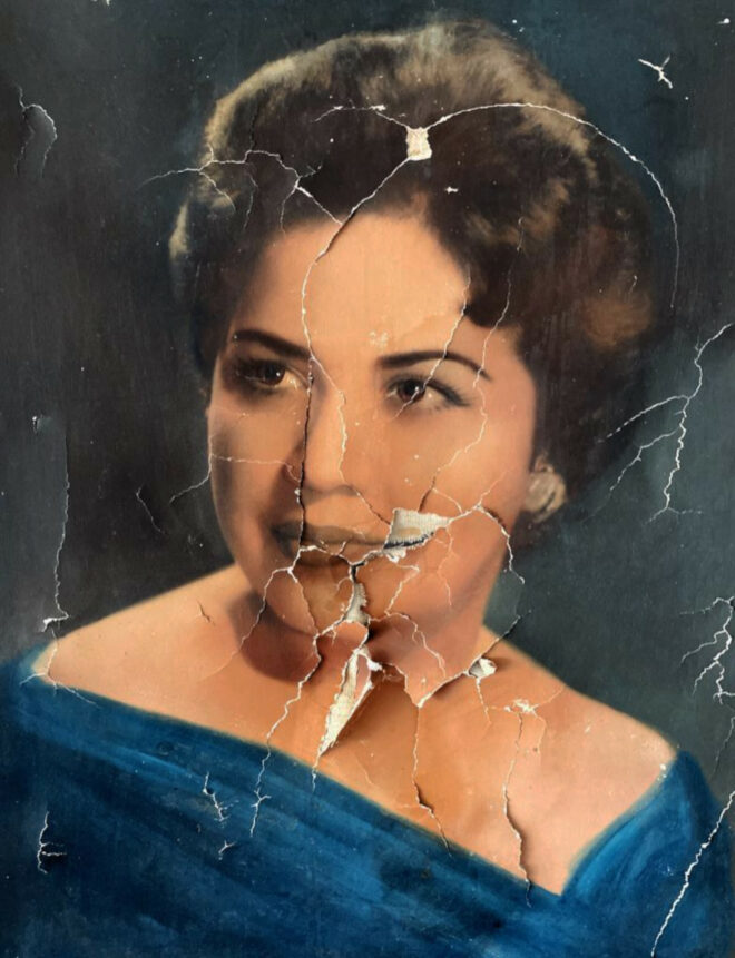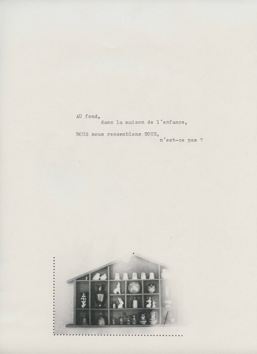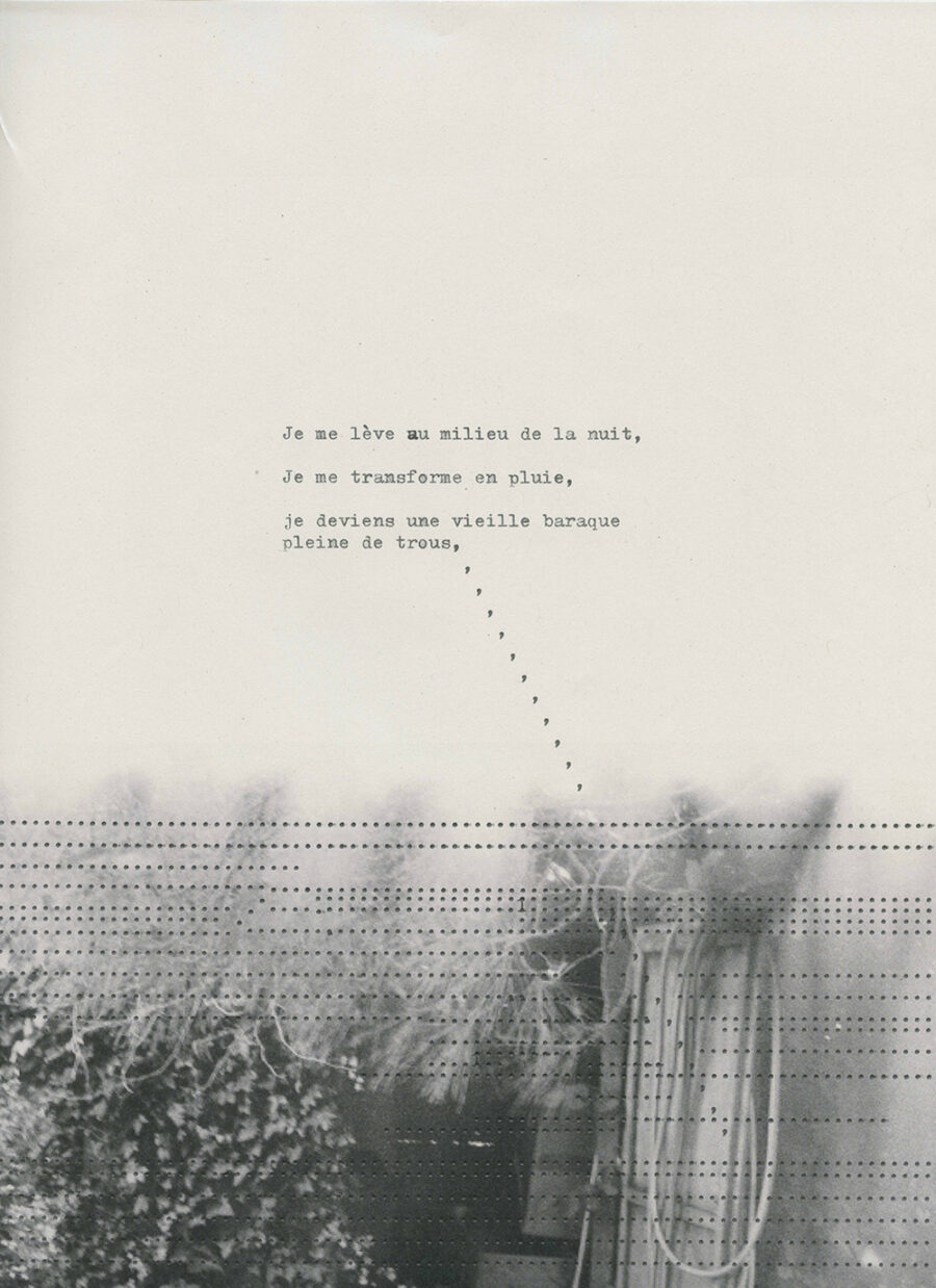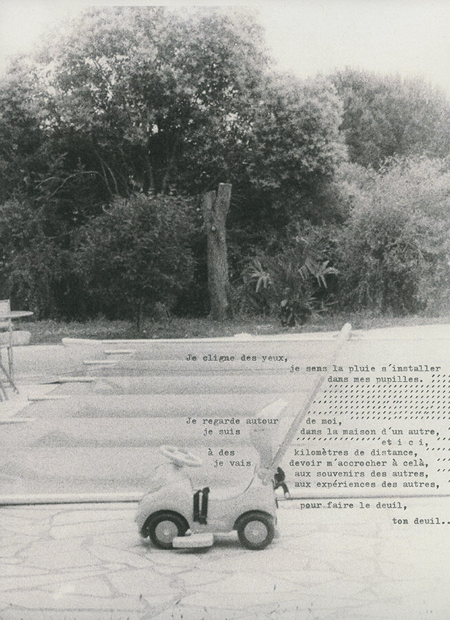 Human experience par excellence, the confrontation with death is told here through the artistic reappropriation of family archives; photographs, videos, audios … thousands of documents sent by WhatsApp on which the artist intervenes and creates works in themselves. In addition, Oleñka Carrasco takes pictures of her living space in France, the “loaned house”, shots that she transforms, manipulates, alters by using a typewriter. The typed text dialogues with the images and seems, as the story is told, to reveal the mystery of these human lives while intensifying it.