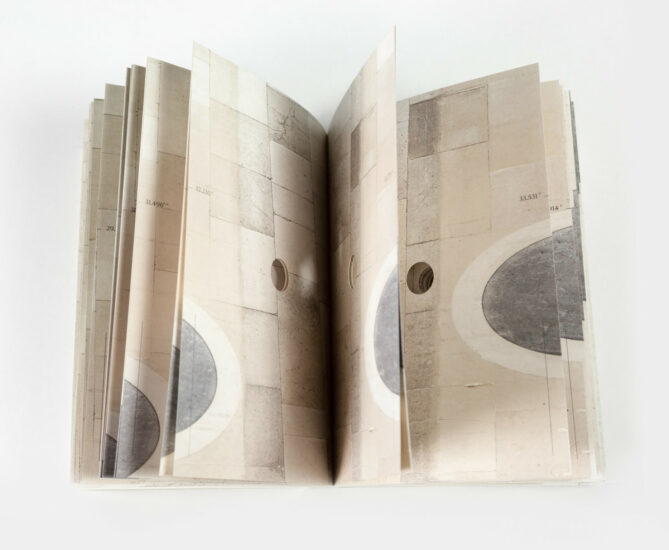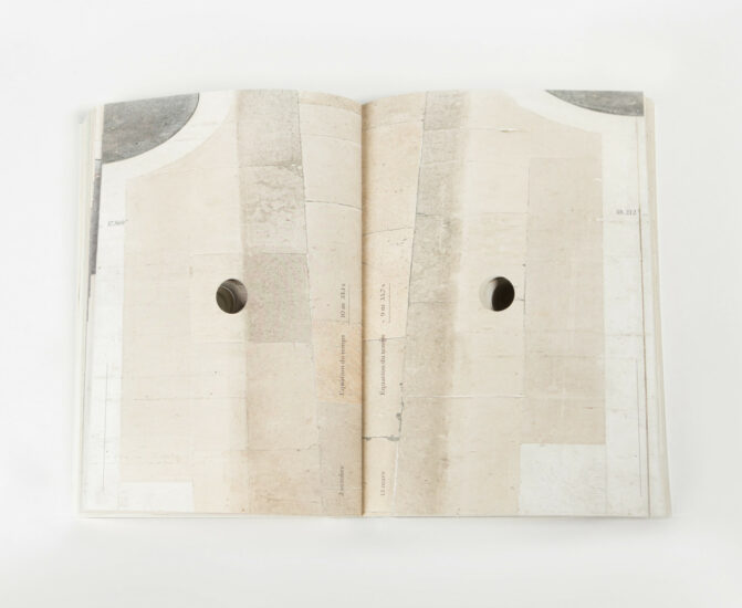 Chacune des 365 premières pages du présent ouvrage est centrée sur la position de l’image du Soleil lors de son passage au midi moyen local dans la salle Cassini de l’Observatoire de Paris (48°50’11’’N – 02°20’14’’E). Les prises de vue ont été réalisées par Raphaël Dallaporta au plus près de l’œilleton situé à 9,933 m à l’aplomb sud de la méridienne. De ce point de vue, l’image du Soleil apparaît circulaire, la perspective réduisant les variations de sa projection elliptique au cours de l’année. L’astronome et historien des sciences Denis Savoie expose dans les pages suivantes les principes de l’équation du temps, d’après le tracé de la courbe en huit lorsque la révolution de la Terre autour du Soleil au bout d’un an est accomplie.