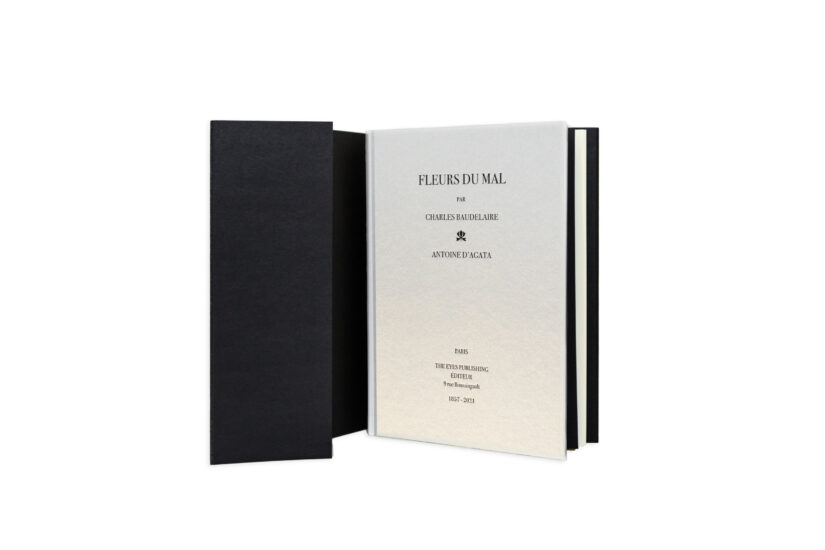 The work is based on the original uncensored edition of Baudelaire’s collection accompanied by these engraved prints by d’Agata. Present and past are superimposed. Like a game of transparency that will present the frame of an image on the cover. In this work Fleurs du Mal, Baudelaire is a stroller, a spectator of the world around him, of urban transformations, while d’Agata embodies photography, life and reappropriates the space of the city by the gesture.